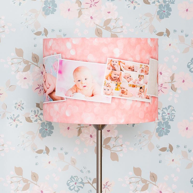 Personnaliser un abat-jour est une idée originale pour la chambre d'un bébé. Faites-y imprimer des photos de votre famille pour être toujours présent avec lui, même lorsqu'il dort.