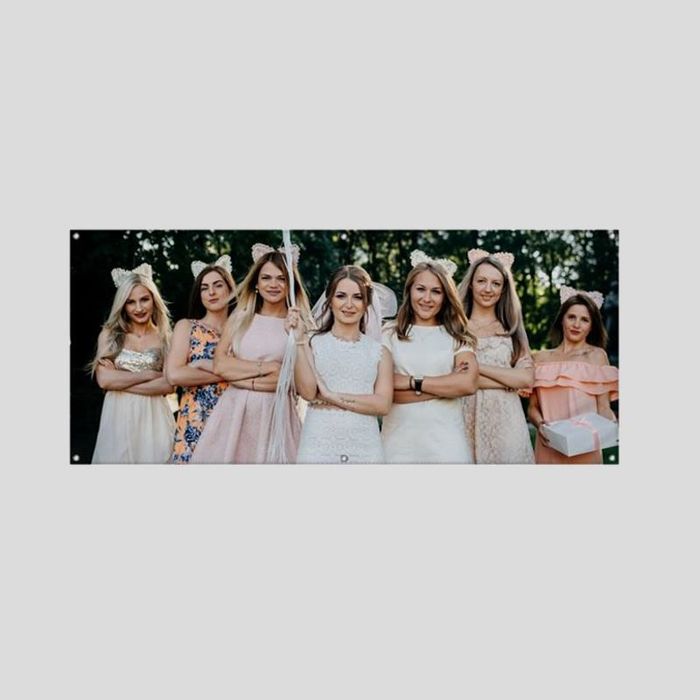 Créez une bannière personnalisée pour votre enterrement de vie de jeune fille et mettez la future mariée au centre de l'attention de plusieurs façons. Idéale pour ajouter une touche d'humour ou une touche sentimentale à l'événement.