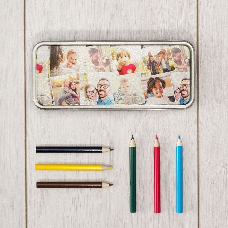 Chaque coffret à crayons personnalisé est réalisé dans un métal antirouille, solide et 100 % recyclable. L’encre éco-responsable est infusée directement dans la surface métallique pour des couleurs éclatantes qui ne s’écaillent pas. Que vous cherchiez une boîte à crayons personnalisée photo pour un enfant ou une boîte à crayons personnalisée pour adulte, vous obtenez un accessoire durable et élégant.