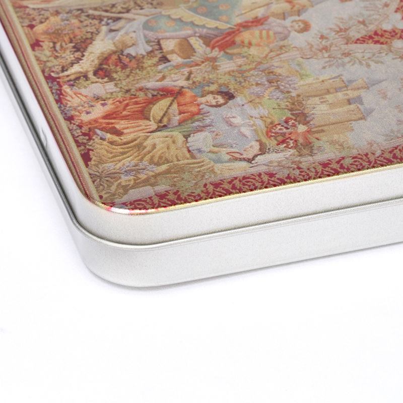 Votre photo est imprimée sur le couvercle de la boîte en métal plate personnalisée grâce à une technique numérique moderne qui fusionne les encres directement dans le métal. Ce procédé à la pointe de la technologie permet d'obtenir une impression longue durée de qualité. L'image est imprimée uniquement sur le dessus du couvercle, mais en débordant un tout petit peu sur les bords arrondis. Le reste de la boîte conserve son aspect métallique argenté.