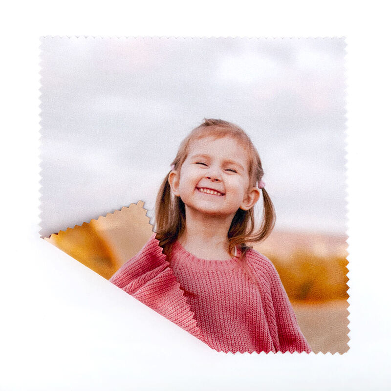 Votre visuel est imprimé numériquement sur la microfibre avant d’être découpé au laser pour créer des bords crantés nets et roses. Cette technique garantit une finition anti-effilochage et permet de reproduire des détails précis. Nous n’imprimons qu’à la commande, ce qui réduit le gaspillage et vous assure un chiffon microfibre personnalisé pour lunettes aussi unique que durable.