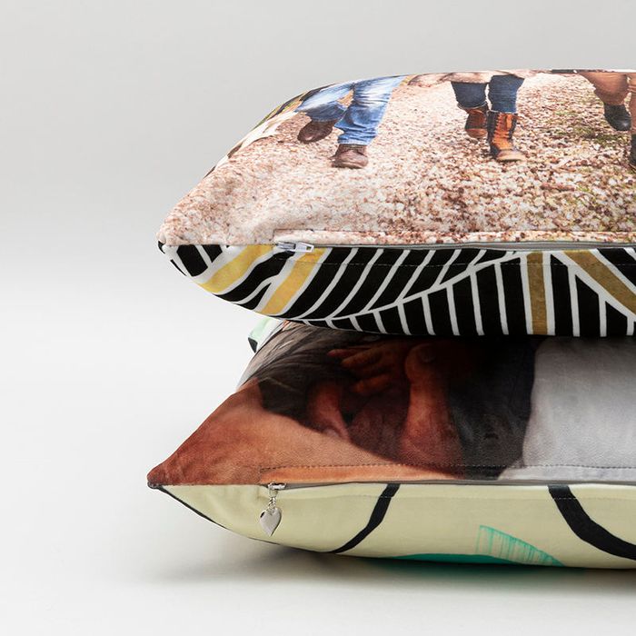 Nos coussins photo personnalisés sont disponibles dans une sélection de tissus haut de gamme, notamment le velours doux, le sergé brossé Archway, le chevron Mayfair et le coton-lin.