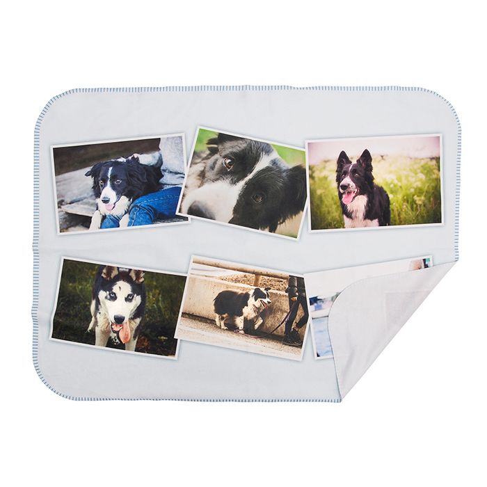 Afin de créer une couverture pour votre chien ou votre chat unique, nous vous recommandons d'opter pour un montage photos. Vous pouvez ainsi sélectionner vos photos préférées de votre boule de poils et les importer dans notre interface de design. Une fois les photos chargées, vous pourrez choisir la forme de montage photos que vous préférez pour votre couverture. Et tout cela en simplement quelques clics et en quelques minutes, alors lancez-vous !
