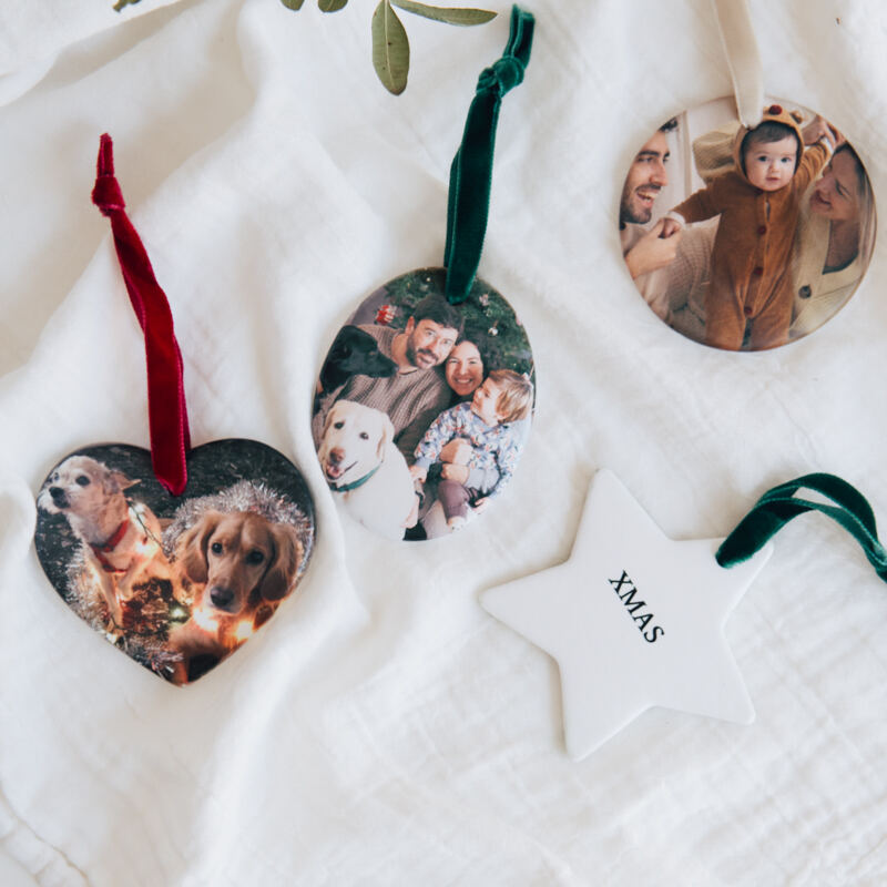 Imprimez toutes vos plus belles photos sur la décoration de Noël personnalisée pour un sapin rempli de souvenirs.
