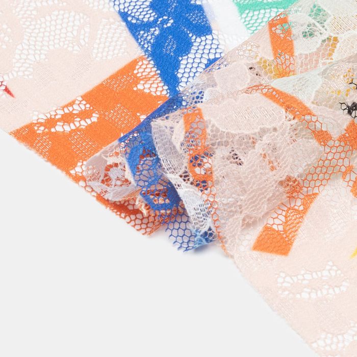 Notre procédé d'impression unique et professionnel donne une impression permanente en couleur avec des détails précis. Les couleurs ressortent magnifiquement et cela est d'autant plus visible sur la dentelle Blossom. Les designs avec des couleurs audacieuses fonctionneront bien puisqu'ils se verront sur l'envers, toutefois nous conseillons d'éviter d'avoir des motifs avec trop de détails en raison du tissage très ouvert.
