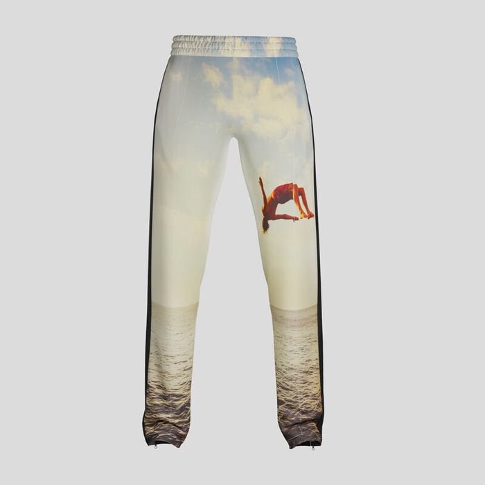 Coupe slim, taille basse élastiquée et zips discrets aux chevilles pour un look contemporain. Les deux poches ouvertes sont également imprimables. Définissez la couleur de zip et de fil, puis personnalisez l’avant, l’arrière et la ceinture. Comme pour la veste, une rayure latérale aux couleurs de votre choix parcourt chaque jambe.