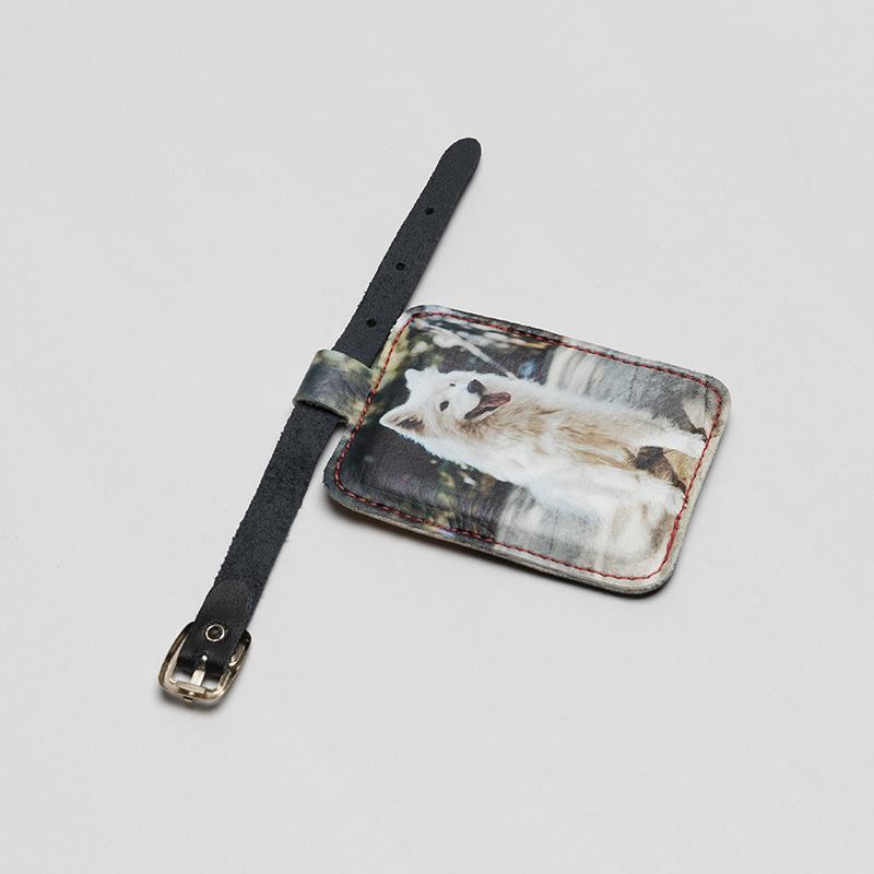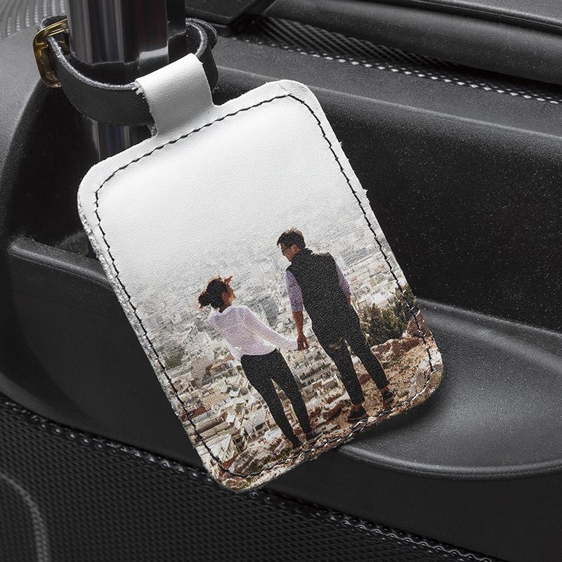 L'étiquette est imprimée sur le recto et le verso, donc n'oubliez pas de créer votre design sur les deux côtés. Vous pouvez ainsi ajouter une photo sur le recto et votre nom et adresse au verso de votre étiquette de voyage personnalisable. Cela vous aidera à reconnaître vos bagages sur le tapis roulant de l’aéroport en un coup d’œil et permettra à la compagnie aérienne d'identifier la valise en cas de perte.