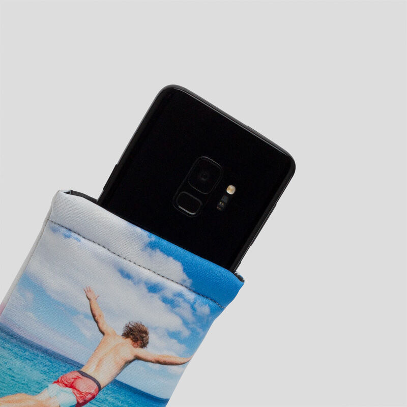 Cet étui est disponible en taille unique. La matière néoprène protègera votre téléphone des chocs et rayures. L’étui se ferme automatiquement afin de protéger votre téléphone efficacement et s’ouvre facilement d’une main. Vous pouvez faire passer vos fils d’écouteurs sans problème afin de garder votre téléphone protégé des chocs et rayures de la vie quotidienne. Créer votre étui de protection maintenant !