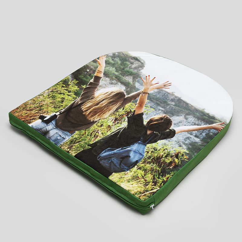 Concevez des galettes de chaise personnalisées, que vous souhaitiez un design identique ou différent pour chaque coussin.