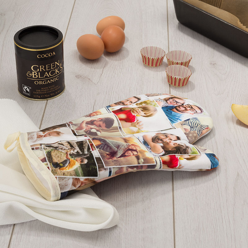 Offrez un gant de cuisine photo personnalisé avec l’adresse ou l’année d’emménagement ; un clin d’œil utile qui trouvera vite sa place accroché à la poignée du four.