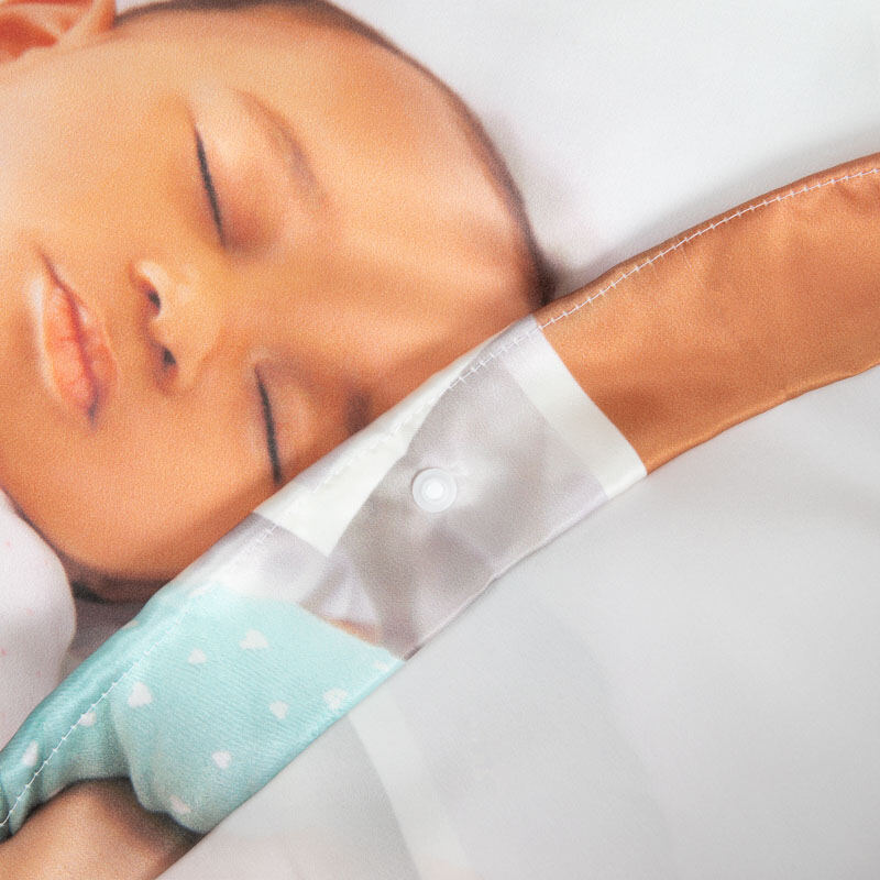Nous n'utilisons que les matériaux les plus fins, et notre tissu en satin de soie ne fait pas exception. Avec sa surface brillante, son toucher luxueux et son superbe drapé, il sera tout à fait à sa place, étalé sur votre lit. Imprimé à l'aide de la chimie des encres réactives pour produire des couleurs très vives et des noirs profonds, vos photos choisies seront vraiment éclatantes. Téléchargez simplement vos images et nous imprimerons, coudrons et emballerons votre housse de couette en soie personnalisée, le tout à la main, dans nos locaux. L'ouverture de la couette est munie de boutons-pression faciles à utiliser, ce qui facilite le changement des draps.