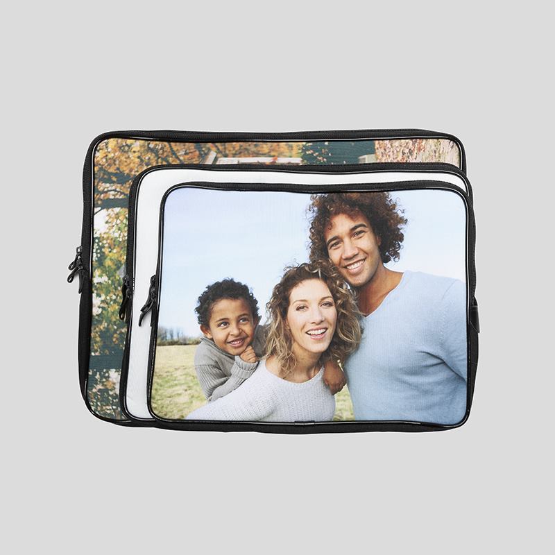 Cette housse PC personnalisable est proposée en trois formats (13’’, 15’’ et 17’’). Le sac ordinateur personnalisé reste léger et se glisse facilement dans un sac à dos ou une valise cabine. Grâce à sa fermeture éclair noire à double curseur, votre ordinateur est sécurisé et accessible en un geste. Offrez-vous ou offrez à vos proches une création unique : la pochette ordinateur personnalisée qui reflète votre personnalité. Cette housse ordinateur personnalisée s’adapte parfaitement à votre style !