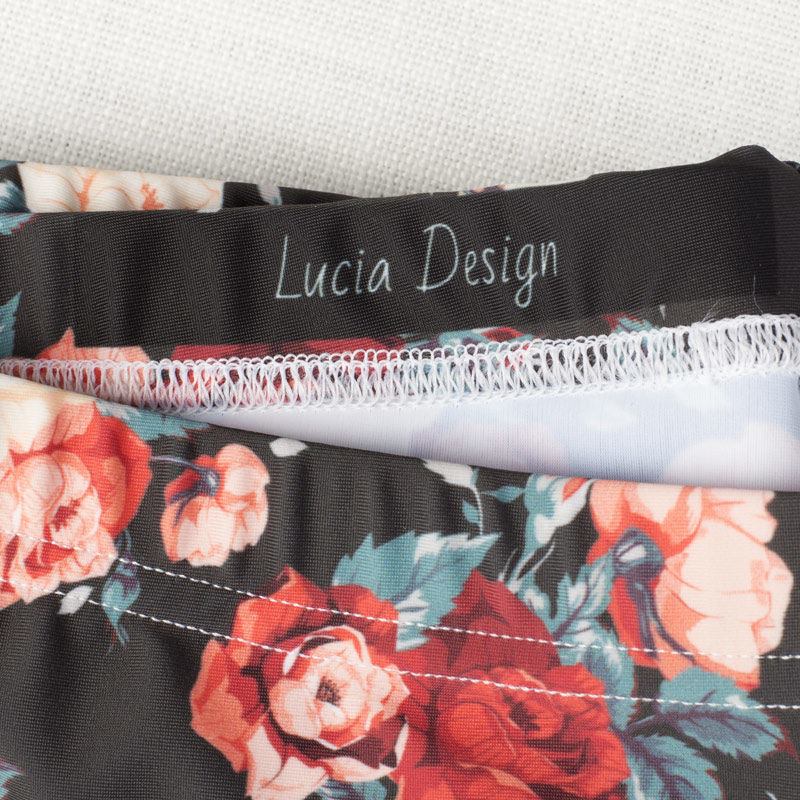 Nos leggings personnalisés sont entièrement fait main. Ils sont tout d'abord imprimés sur le tissu qui est ensuite découpé manuellement puis assemblé et cousu par nos couturiers. Notre processus d'impression par sublimation garantit des couleurs nettes et vives pour longtemps. Vous pouvez ainsi laver nos leggings en machine à 30 degrés sans aucun risque pour l'impression, ni l'élasticité du lycra. De plus, nous utilisons des encres naturelles à base d'eau qui sont donc sans risque pour la peau ou l'environnement. Veuillez noter qu'en choisissant le Lycra mat luxueux, le tissu peut se révéler légèrement transparent lorsqu'il est étiré et choisi avec des coloris clairs.