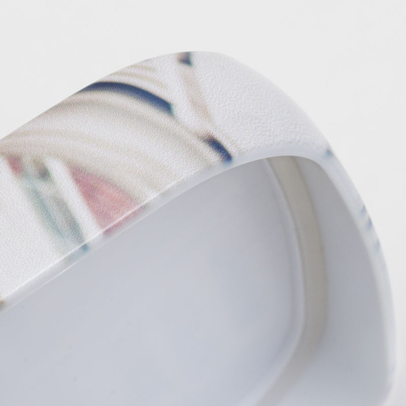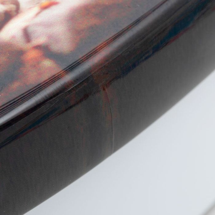 Chaque boîte est fabriquée sur commande dans nos locaux. Nos professionnels de l'impression utilisent vos photos pour les imprimer profondément sur le couvercle en plastique brillant, créant une impression permanente et vibrante qui ne s'effacera pas. Votre design est imprimé sur le dessus et sur les bords du couvercle, ce qui crée un superbe effet 3D.