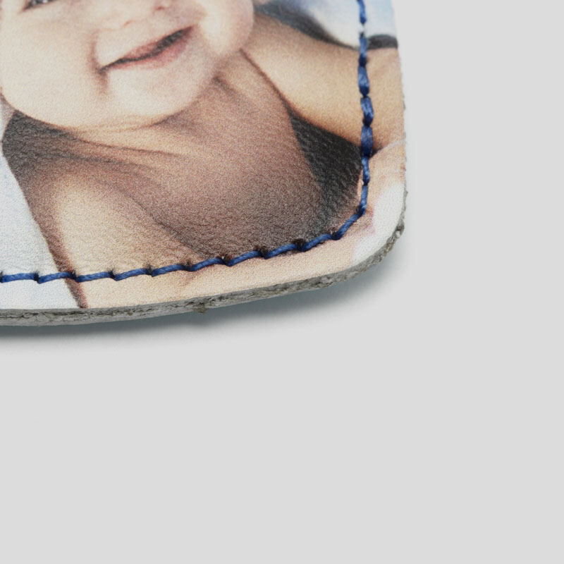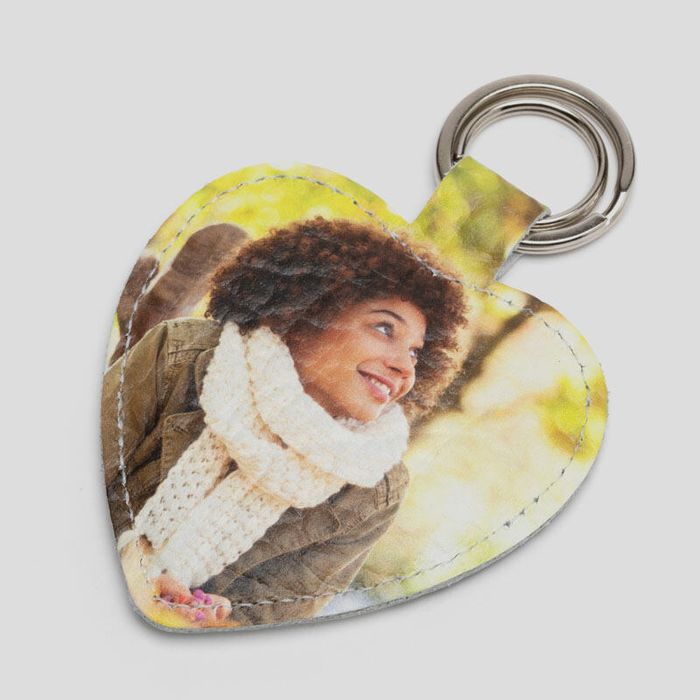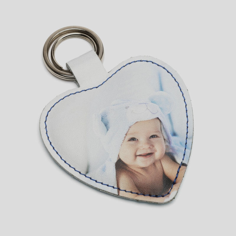 Nous fabriquons tous nos produits dans nos locaux, avec le plus grand soin et attention au détail. Nous créons votre porte clé cœur personnalisé de la même manière: tout d'abord, nos experts en maroquinerie impriment vos photos sur du cuir Nappa lisse ou texturé, ou sur du faux cuir - selon vos préférences. Nous utilisons une technique d'impression spéciale qui assure que l'encre pénètre profondément dans le cuir pour de magnifiques résultats longue durée.