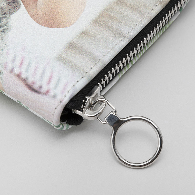 Le recto et le verso du portefeuille femme zippé sont personnalisables indépendamment. Il est préférable d'imprimer des designs différents sur chacun de côtés, car si vous utilisez une seule et même photo que vous aurez coupé en deux, il n'est pas assuré que les deux parties se rejoignent parfaitement au milieu.