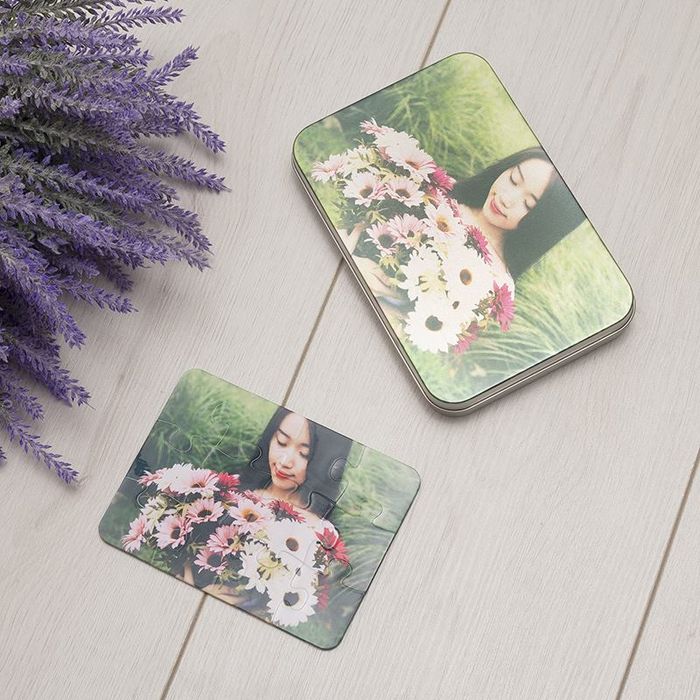 Pour la boîte métallique qui accompagne votre puzzle en plastique nous utilisons la photo que vous aurez choisi sur le recto de votre puzzle.