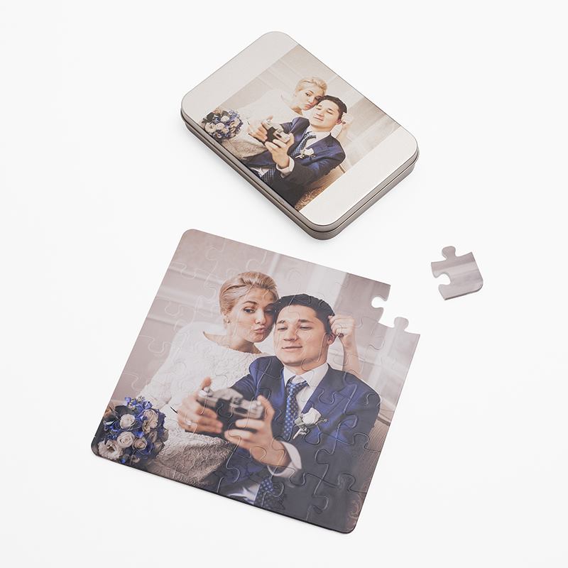 Votre puzzle personnalisé en ligne est fait à la main et sur commande dans nos locaux, afin d'assurer qu'il s'agisse bien d'un cadeau totalement sur mesure. Le plastique épais et incassable est moulé puis imprimé avec vos photos, en utilisant un processus d'impression spécialisé qui permet aux encres d'entrer profondément dans la surface. L'impression est ainsi permanente et ne s'effacera pas ou ne se décollera pas avec le temps. Les pièces du puzzle sont découpées dans une forme classique et avec précision pour qu'elles puissent s'emboîter facilement. Votre photo est élégamment imprimée sur les bords incurvés du puzzle, ce qui offre un effet 3D et donne une autre dimension à vos photos. Grâce à l'impression de bord à bord et la magnifique finition brillante, vos photos ressortiront en très grande définition, avec des couleurs audacieuses et un dynamisme naturel.