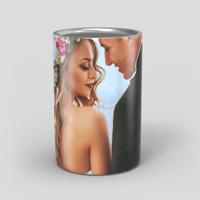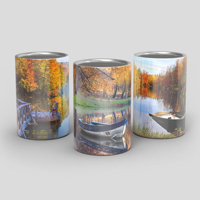 La zone d'impression entoure totalement le cylindre ; votre visuel se rejoint donc à l’arrière. Gardez les éléments importants à distance des bords supérieur et inférieur pour éviter toute déformation. Les parties blanches s’afficheront sous forme d’acier brossé, pour un look contemporain.