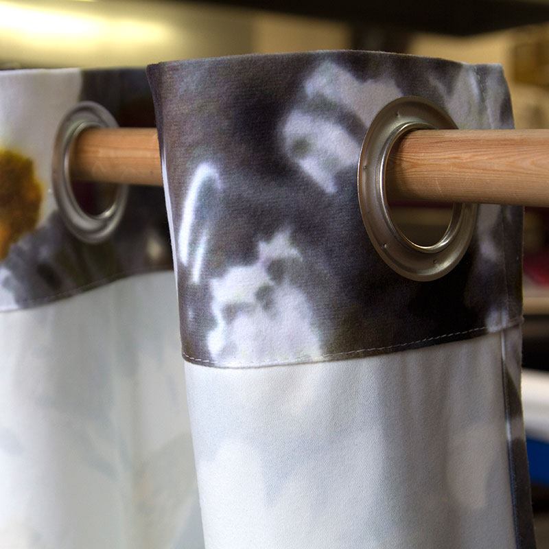 Votre création est réalisée sur le recto du tissu grâce à une impression numérique avancée, pénétrant en profondeur les fibres. Les encres que nous utilisons sont écologiques et offrent un rendu haute définition. Ensuite, notre équipe d'artisans découpent le textile selon vos mesures afin que notre atelier couture termine la confection de votre rideau personnalisé avec photo.