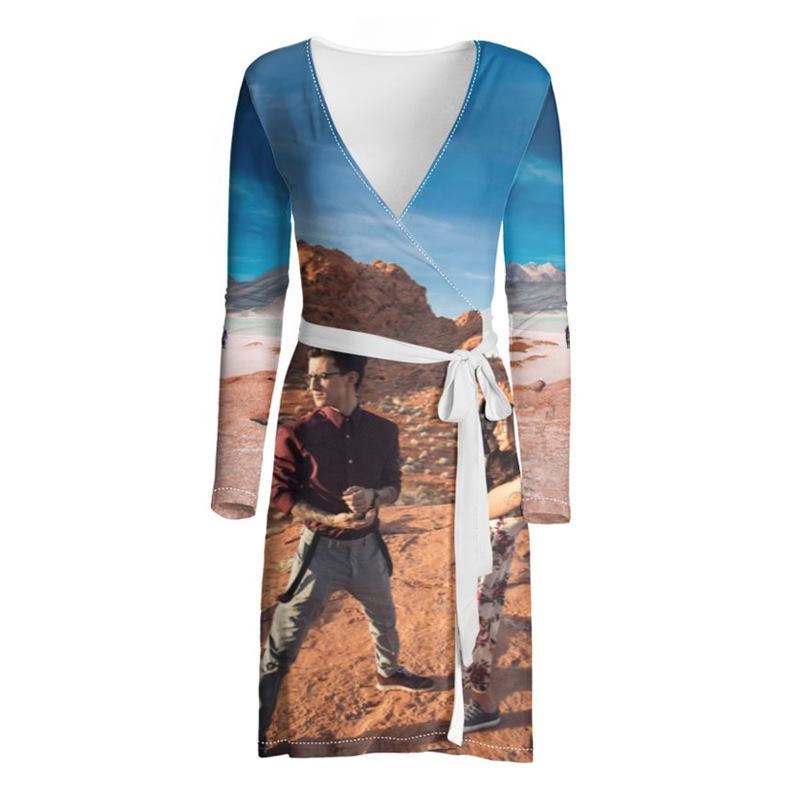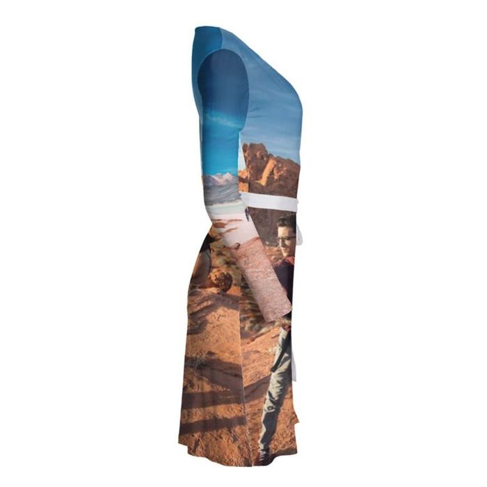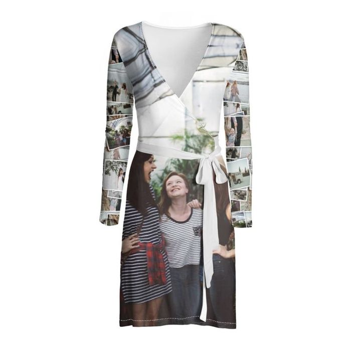 Exprimez votre style avec une robe portefeuille personnalisable imprimée à votre image. Disponible du XXS... Lire plus