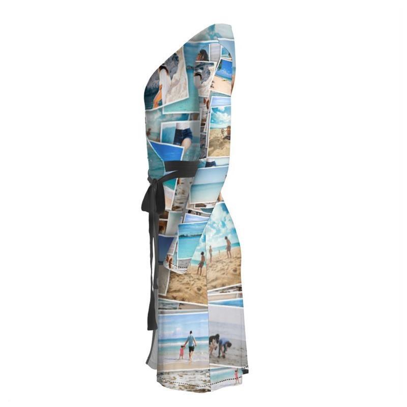 En version décontractée avec des baskets ou sophistiquée avec des talons, votre robe portefeuille design personnalisé s'adapte à toutes les occasions. Optez pour des photos colorées pour un look estival, ou choisissez des images monochromes pour une allure chic en soirée. N'hésitez pas à mélanger textures, textes et illustrations pour créer la robe portefeuille personnalisée dont vous rêvez.