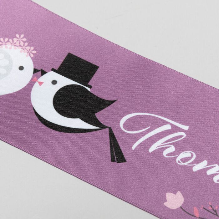 Votre ruban de mariage personnalisé est destiné au jour où vous déclarez votre amour à votre partenaire, à la vue de tous. Il est donc tout naturel que le même soin et le même amour soient apportés à sa fabrication. Nous utilisons les dernières technologies et méthodes pour fixer les encres écologiques aux fibres du satin, ce qui permet d'obtenir une impression durable et sans texture. Tout est fait à la main, avec tout l'amour du monde.