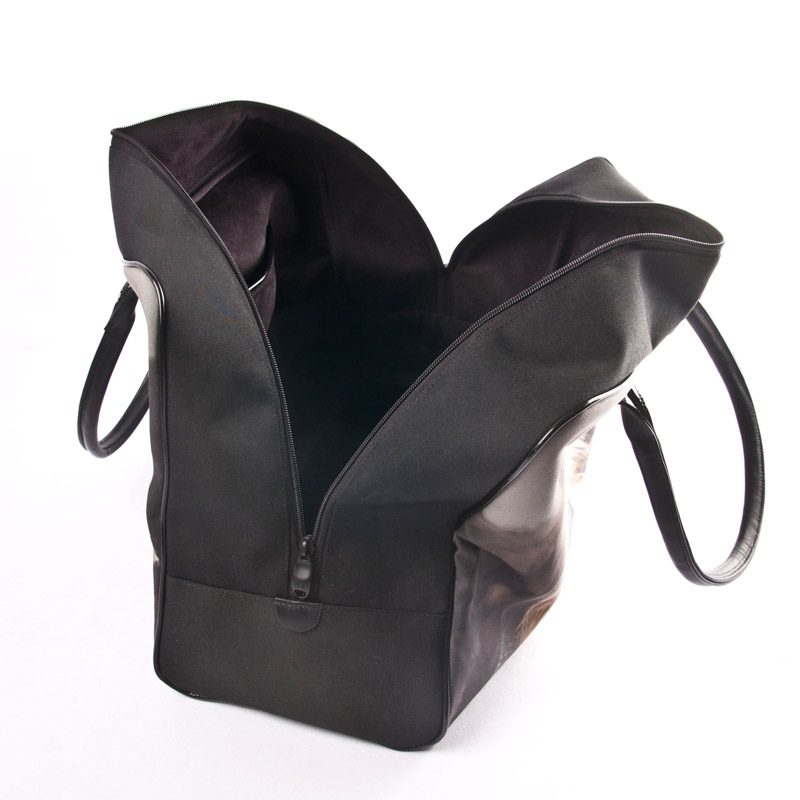 Nous imprimons vos photos sur un tissu de 300 g/m². Notre processus consiste à injecter l'encre au plus profond du tissu, de façon à ce que votre design soit durable et permanent. Découpé et cousu en fonction de votre choix entre le cuir Nappa italien très souple ou sur le tissu lui-même, nos couturiers façonneront votre sac avec soin et précision, en ayant pour seul but de créer un produit flamboyant et de haute gamme.