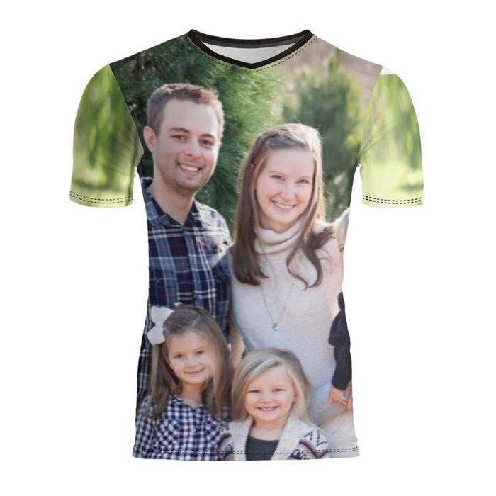 Mesurez votre tour de poitrine avec un mètre-ruban en le plaçant sous les aisselles et sur les omoplates autour de votre dos.Nous imprimons vos photos directement dans le tissu avec une méthode d'impression numérique. Cela imprime les encres respectueuses de l'environnement profondément dans les fibres du tissu, ce qui apporte une impression vive qui ne s'efface pas. Votre tissu est ensuite coupé à la bonne taille avec votre motif exclusif. Imprimer et couper le tissu de cette manière signifie que votre imprimé sera présent sur tout le t-shirt slim avec photos sans laisser de lignes blanches sur les côtés du t-shirt.