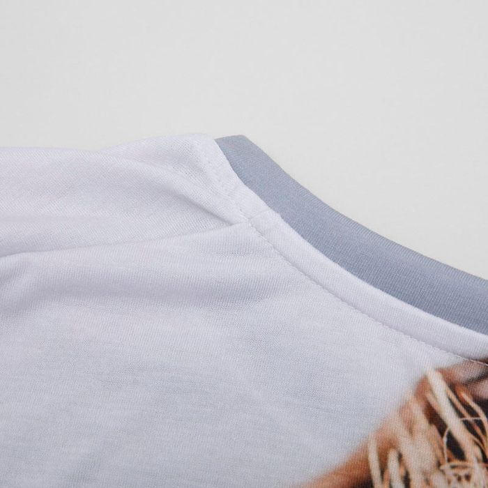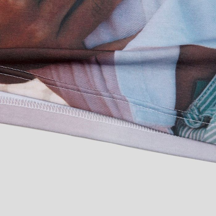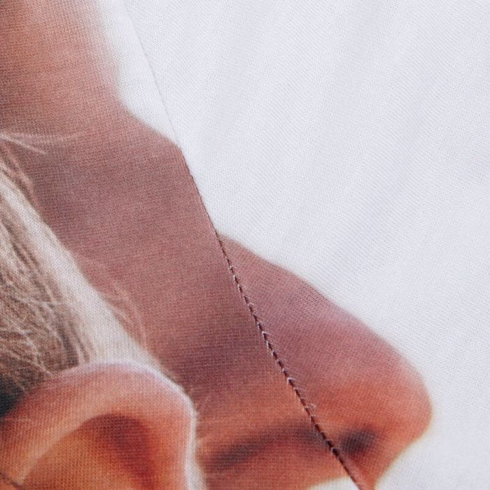 Nous vous conseillons de ne pas mettre un design à cheval sur les coutures ou ourlets. S’agissant d’impression sur t-shirt blanc, nous ne pouvons garantir une précision à 100 % en cas d’impression sur les coutures car le tissu s’étire et peut bouger pendant le processus d’impression. À noter aussi que l'outil de prévisualisation est un aperçu de votre commande, l'article varie d'une impression à une autre.