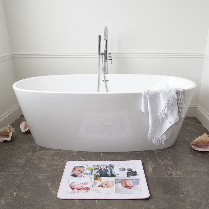 Décorez votre salle de bain avec un tapis de bain personnalisé photo, design et antidérapant.