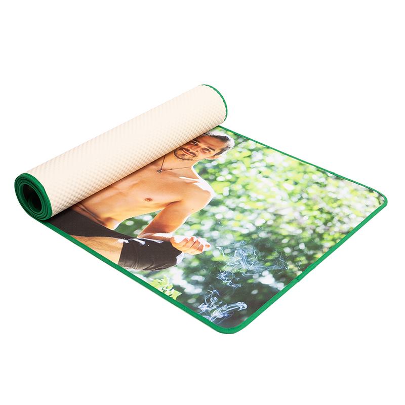 Nos experts de notre atelier couture cousent la toile de jute sur la base en caoutchouc du tapis directement dans nos locaux, afin de rendre ce produit complètement unique. Grâce à notre technique d'impression par sublimation, nous offrons des impressions intenses, riches et dynamiques, et celles-ci sont résistantes à l'épreuve du temps. Tous nos tapis de yoga personnalisés sont faits entièrement à la main dans notre usine.