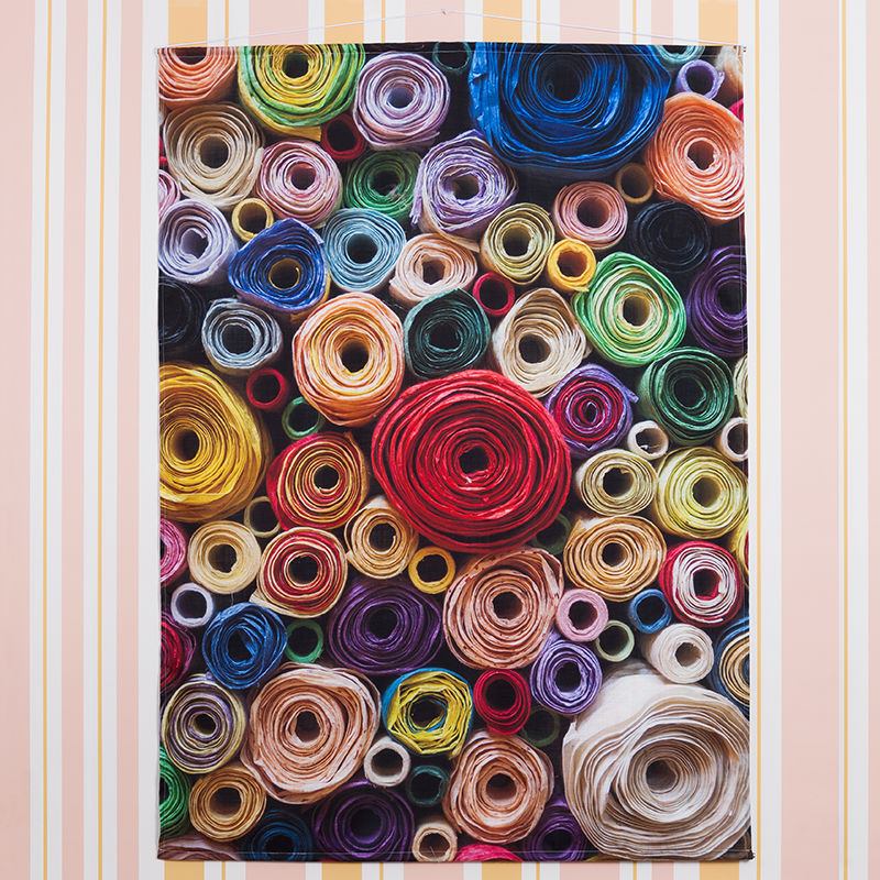 Condition d'entretien : dépoussiérez régulièrement pour garder la vibrance des couleurs. Pour un nettoyage plus important, retirez votre tenture du mur et utilisez un aspirateur.