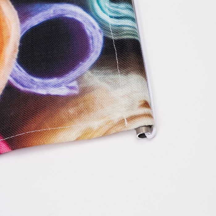 En haut et en bas du tissu sur mur, nous fixons des tubes en aluminium de 8 mm dans des ourlets pour permettre un support solide. Gardez à l'esprit que les bords de votre photo ou de votre design seront utilisés pour créer les boucles des ourlets. Ainsi, assurez-vous que toutes les parties importantes soient suffisamment éloignées des bords.
