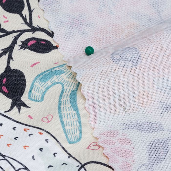Nous ne pouvons imprimer que sur un seul côté du tissu. Beaucoup de nos tissu sont semi-transparents, ce qui causerait des problèmes avec l'impression des deux côtés. Nous ne pouvons imprimer le verso d'aucun tissu.