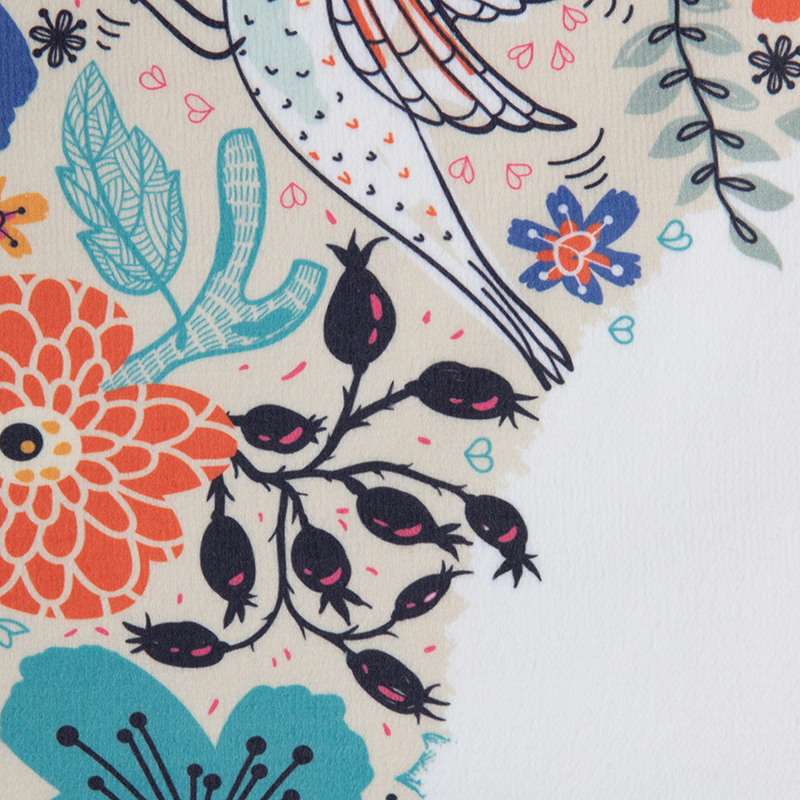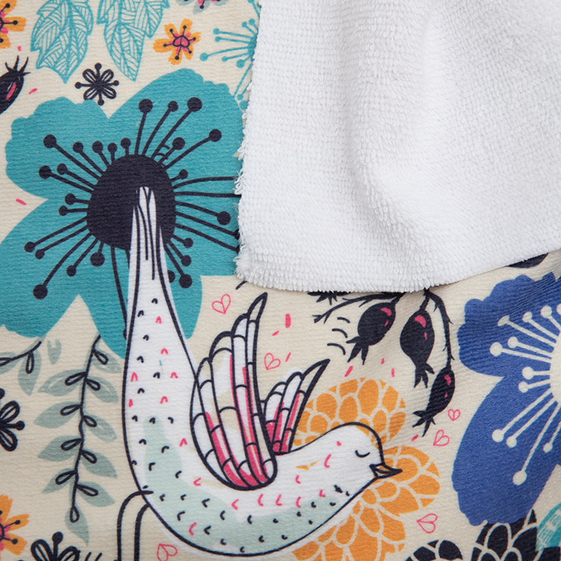 Comme tous nos produits, votre tissu éponge est imprimé dans notre locaux avec notre technique d'impression par sublimation. L'impression est réalisée avec des encres à bases d'eau, soit sans danger pour la peau ou l'environnement. L'armure fermée et bouclée du tissu nous permet une impression profonde, au coeur de la fibre.