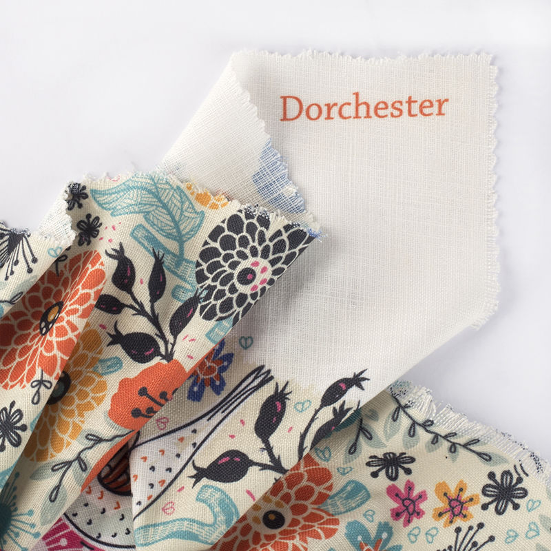 Cette technique permet d'imprimer votre motif sur le tissu avec des couleurs éclatantes, et vous pourrez aussi choisir ses finitions. Nous pourrons le faire ourler par l'une de nos couturières expertes, ou vous l'envoyer tel quel dès la fin de l'impression, de sorte que vous ne recevriez que le tissu de lin imprimé, sans bordures. En raison de la nature du lin et de nos méthodes de traitement, vous pourrez y trouver ponctuellement de petits points blancs non imprimés. Ce phénomène est tout à fait ordinaire et n'affectera en aucun cas les couleurs et les détails de votre impression.