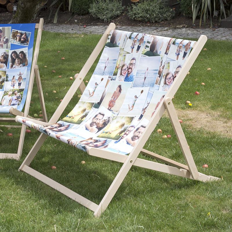 Vous avez la possibilité de placer plusieurs photos sur la toile du transat et d'y ajouter du texte. Il vous suffit pour cela de télécharger les photos de votre choix sur notre site et de les disposer comme bon vous semble sur la surface de la toile. Créer un transat unique est très facile grâce à notre outil de prévisualisation en ligne qui vous permet de voir à quoi va ressembler votre futur transat. Si vous désirez placer une seule photo sur votre transat personnalisé, gardez en tête la forme de la toile, car il faut une photo qui puisse s’y adapter. Si vous n’êtes pas certain que votre photo convienne, utilisez notre service gratuit de correction d’image ou bien demandez conseil à nos designers.
