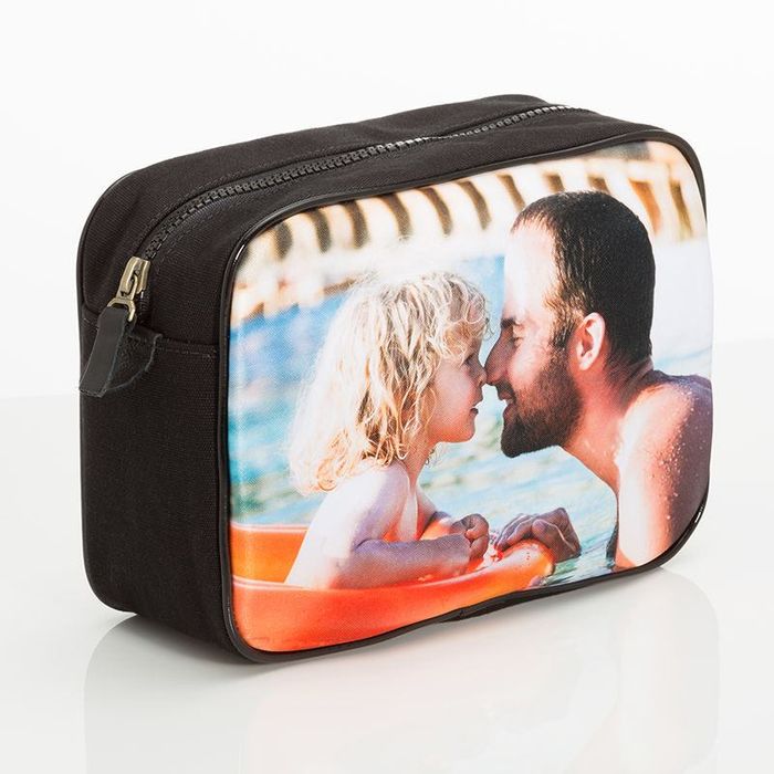 Créez le design de votre trousse de toilette pour homme. Personnalisez-la avec une photo de sa voiture préférée, de sa ville natale, d'un groupe de musique ou d’un héros de BD qu’il adore. A vous de choisir ! C'est également un cadeau idéal (en toile de coton ou en cuir) à faire à un homme qui voyage régulièrement afin qu’il puisse facilement transporter ses indispensables de beauté avec lui. Offrez-lui une trousse de toilette qui le suivra partout et lui rappellera la maison même quand il sera loin de chez lui !