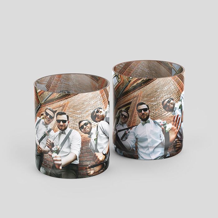 Le léger effet givré fait merveille avec des couleurs vives ou des photos contrastées. Nous recommandons donc d'utiliser des visuels saturés afin de faire ressortir votre création. L'impression entoure tout le verre mais laisse une jonction verticale discrète à l'arrière.